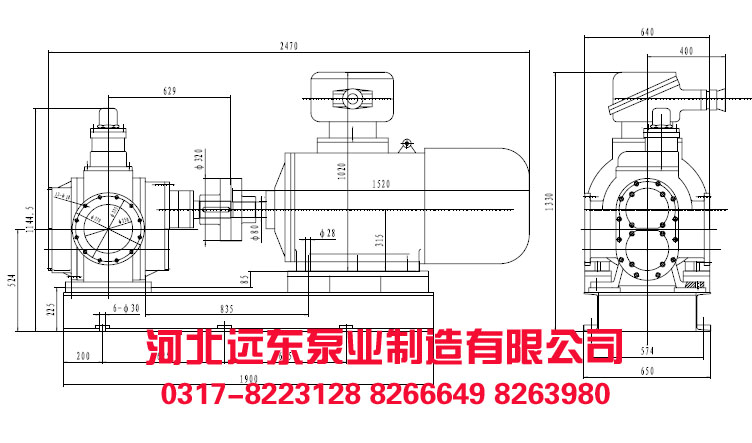 KCB3800齒輪泵安裝尺寸圖:流量228m3/h(3800L/min)壓力:0.6Mpa,吸入真空高度2米,效率44%,口徑250,配用電機(jī)功率:Y110KW-6 | |||||||||||