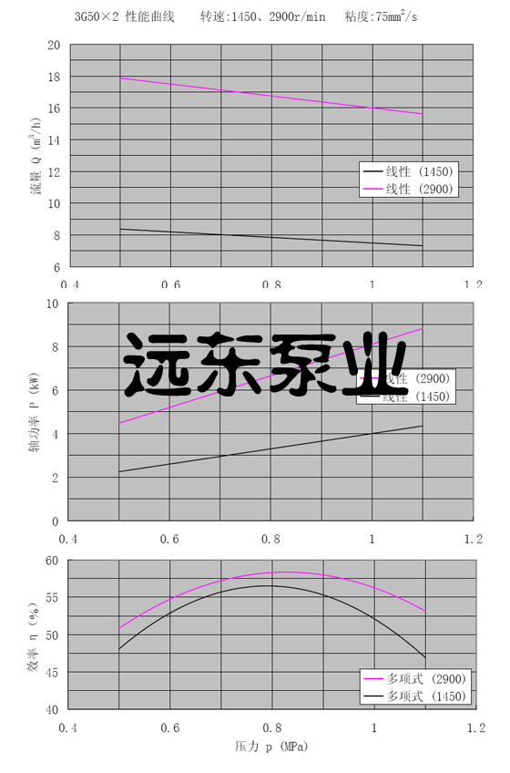 3GR50*2三螺桿泵轉(zhuǎn)速1450,2900r/min,粘度75cst性能曲線圖.
