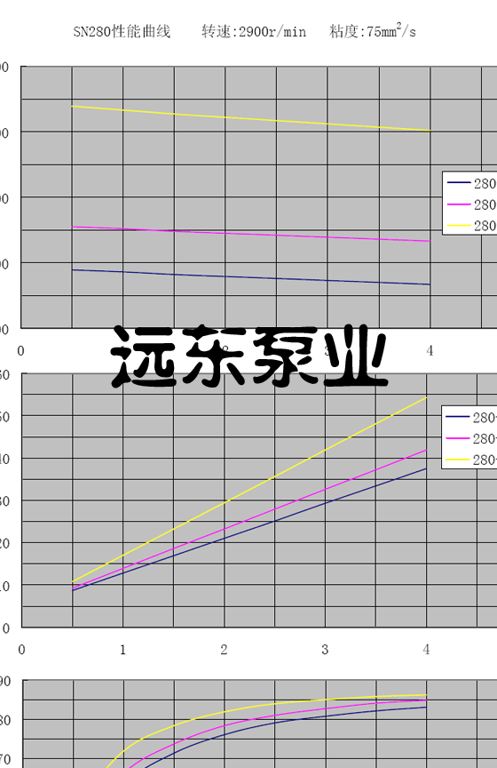 SN280三螺桿泵(SNH280三螺桿泵,SNF280三螺桿泵,SNS280三螺桿泵)轉速2900性能曲線圖